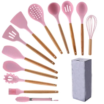 Addition Information of C Wooden Handle Silica Gel Kitchen Ware 12 Pieces European Style Non-stick Pot Shovel Kitchen Tools Bakery Suit